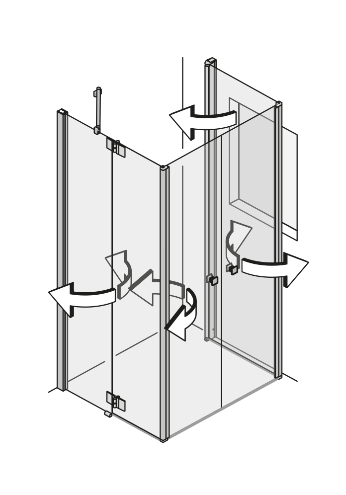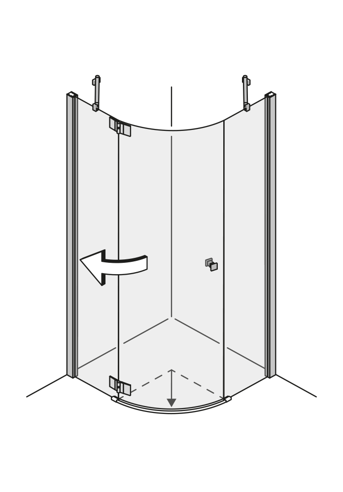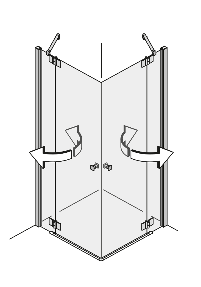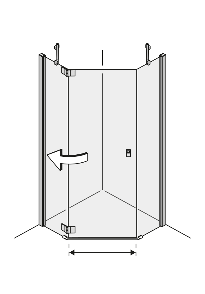 Klick auf Skizze startet Animation.Fünfeckdusche mit Flügeltür