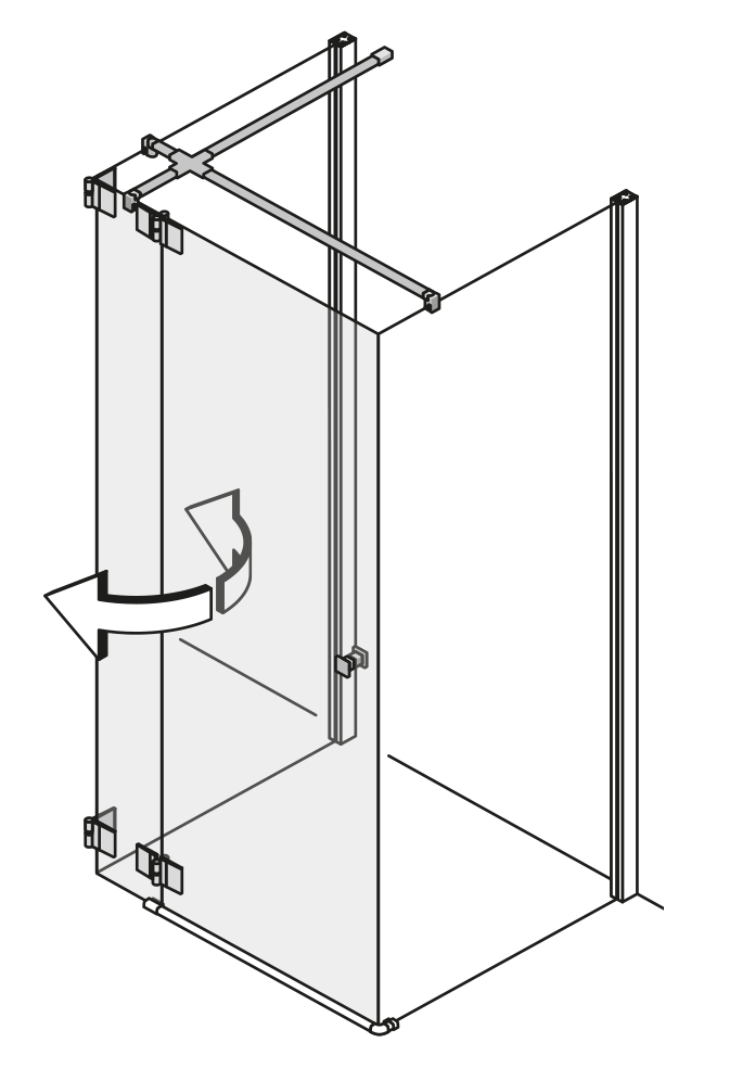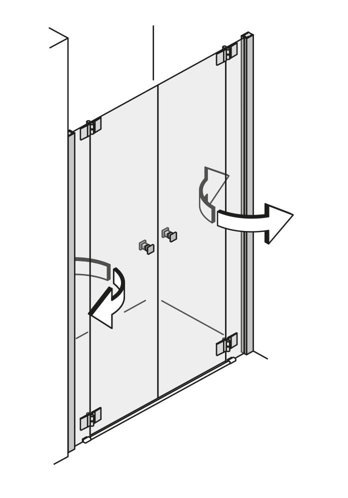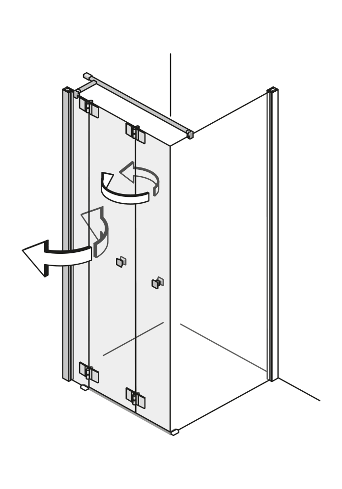 Pendeltür an Fixteil zu zwei Seitenwänden