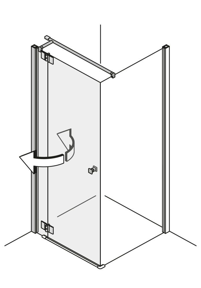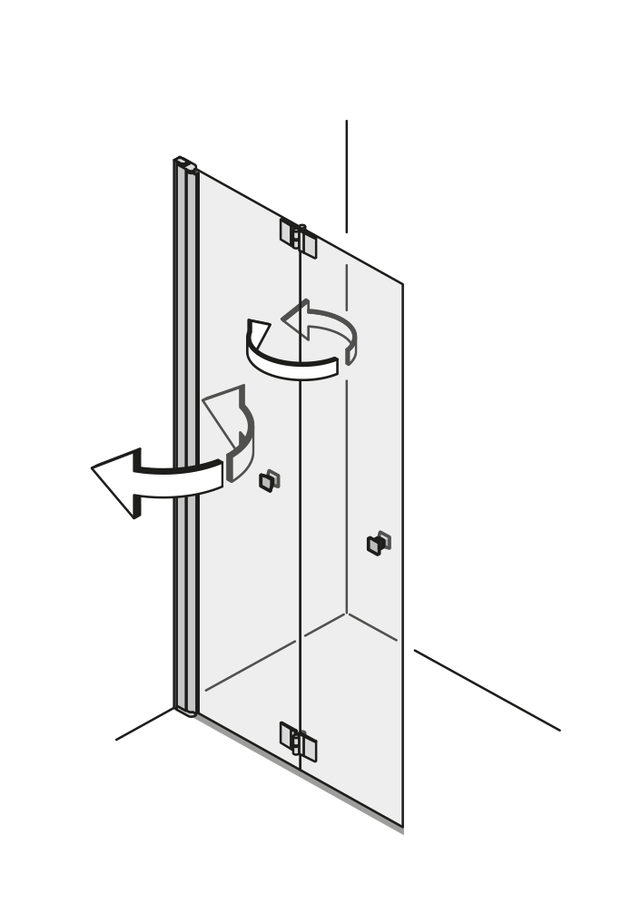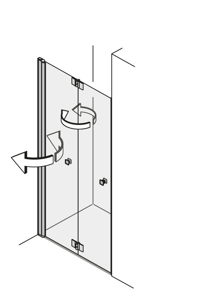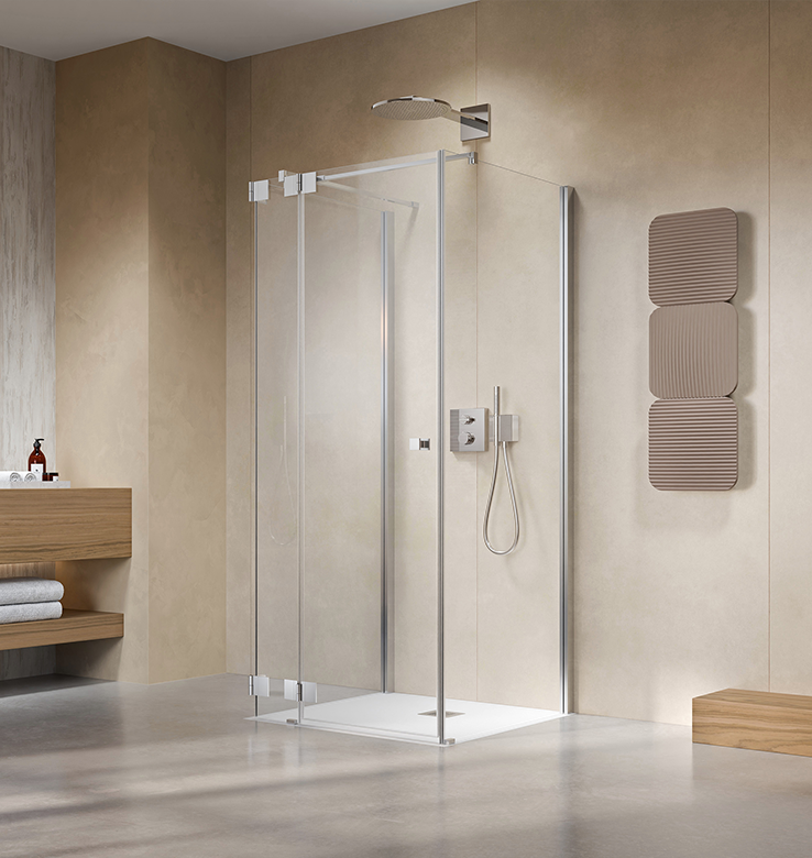 Flexibilität auf einem neuen Niveau. Das schwenkbare Glaselement lässt sich einfach nach innen oder außen drehen. So bietet es auch in kleineren Nischen einfachen Einstieg sowie breiten Spritzschutz.