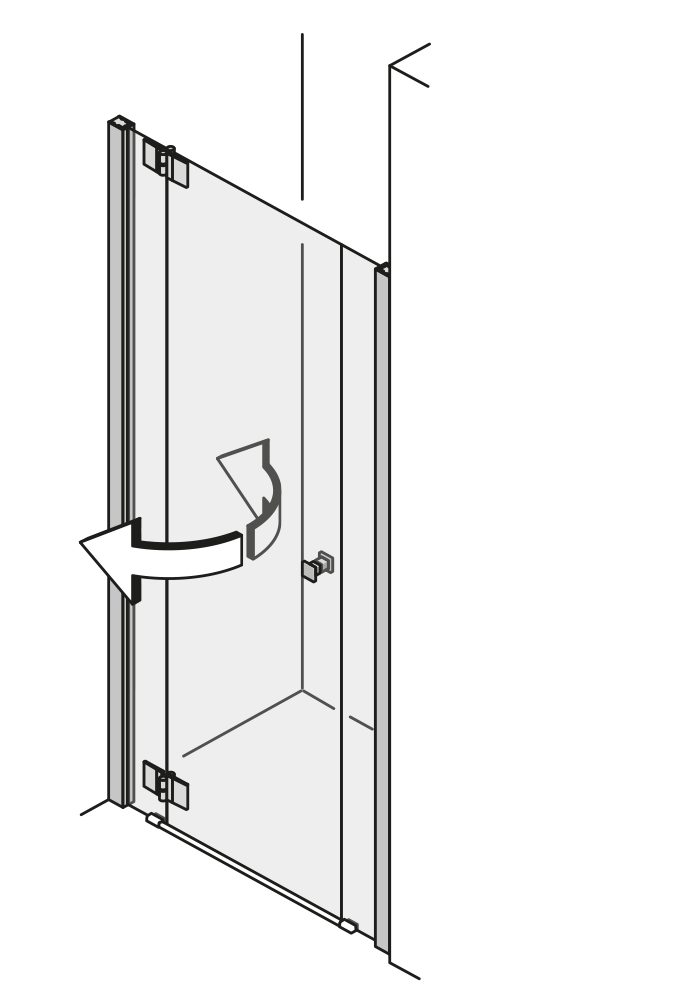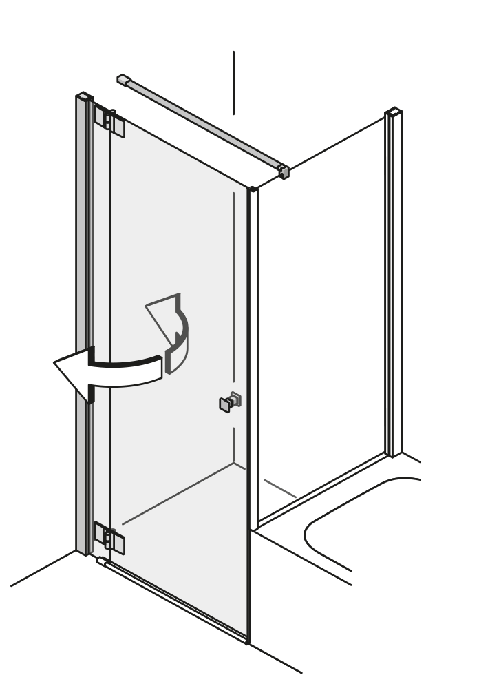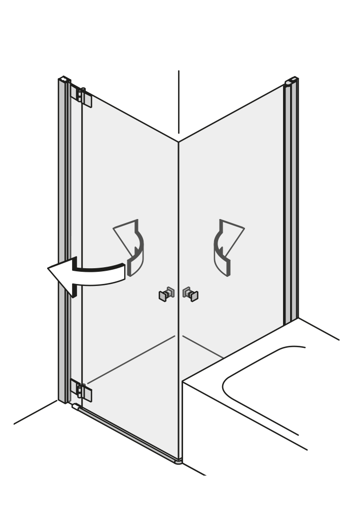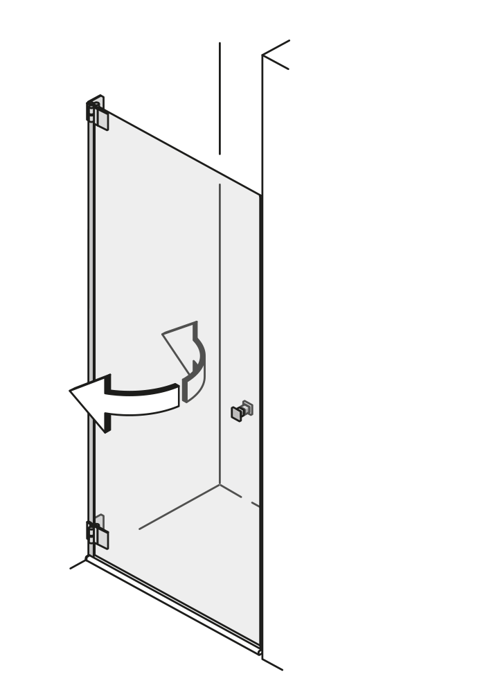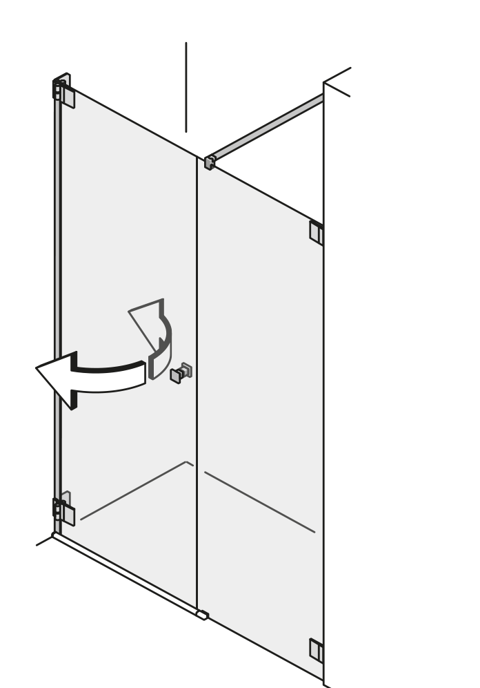 | Die Wandbefestigung über zwei schmale Scharniere oder Wandwinkel ist eine besonders transparente Lösung für Ihr Bad. Das Glas verläuft nahezu nahtlos von Wand zu Wand. |