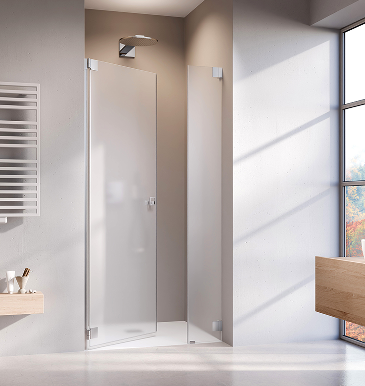 Die clevere Falttür-Variante für Bäder mit wenig Platz. Zum Duschen entfaltet sich eine großzügige Walk In-Lösung. Nach Gebrauch legt sich die Duschwand wieder platz-sparend an die Wand.Serienbreiten: