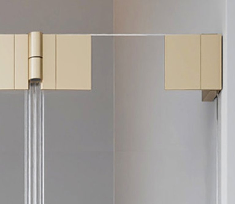 | Die besonders schlanken Scharniere sind hochfest verklebt. Die Innenseite des Glases bleibt vollständig glatt. Dadurch entsteht eine durchgängige Fläche mit klarer Ordnung und visueller Ruhe - für hygienische Sauberkeit und einfache Reinigung. |